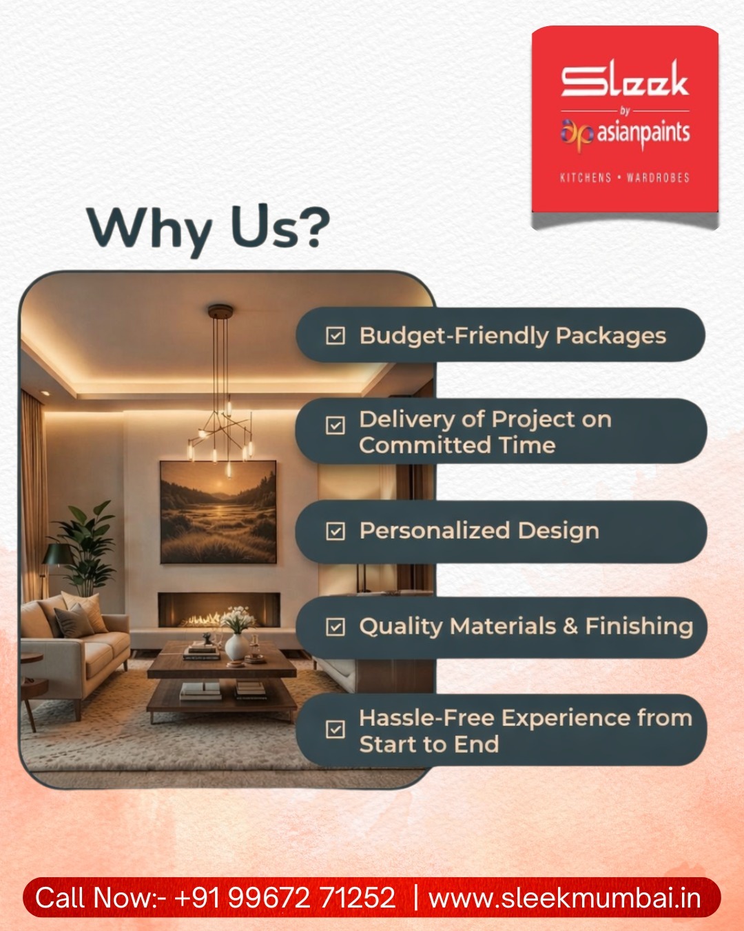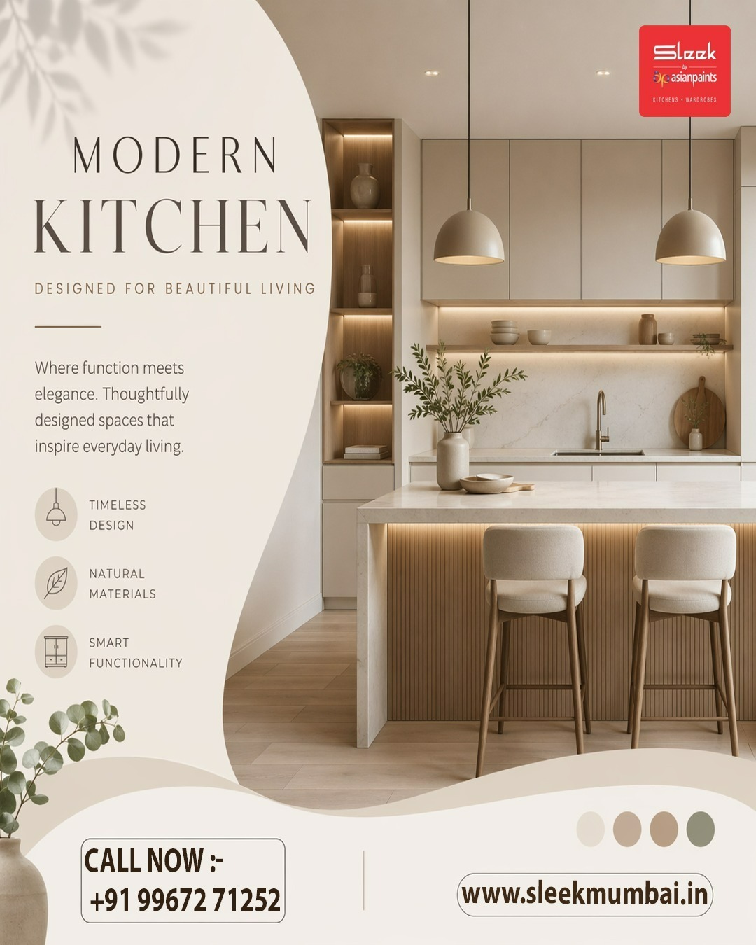 Sleek is a subsidiary of Asian Paints, and provides complete kitchen and wardrobe solutions. We're India’s largest modular kitchens brand. Our work is known for its innovative and efficient designs, world-class quality and excellent craftsmanship.